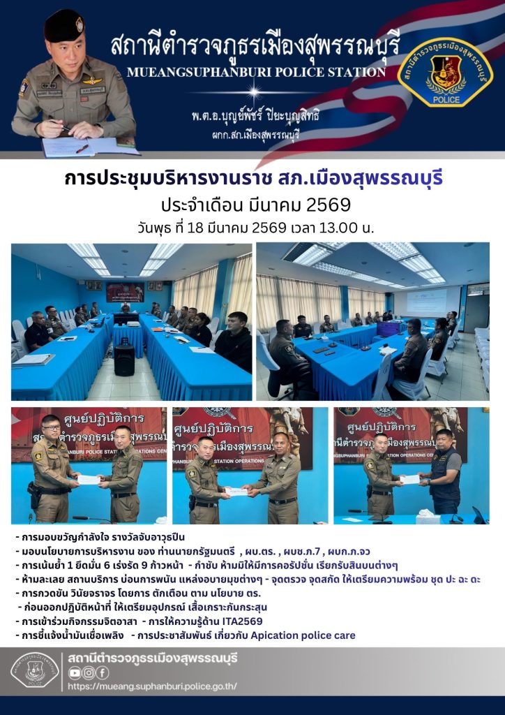 การประชุมบริหารงานราชการ สภ.เมืองสุพรรณบุรี ประจำเดือน มีนาคม 2569