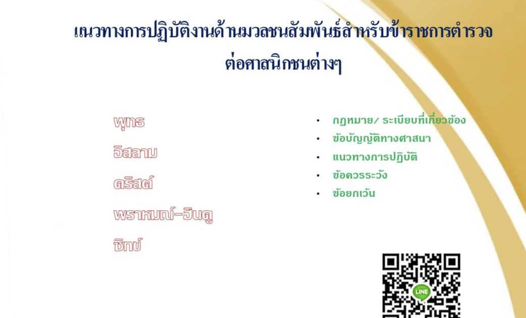 ข่าวประชาสัมพันธ์ 🎯แนวทางการปฏิบัติงานด้านมวลชนสัมพันธ์ สำหรับข้าราชการตำรวจต่อศาสนิกชนต่างๆ ซึ่งสามารถศึกษาได้จาก QR Code ในภาพ