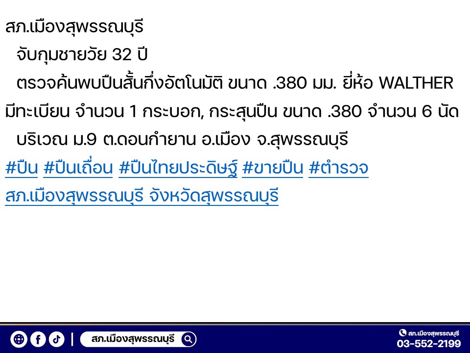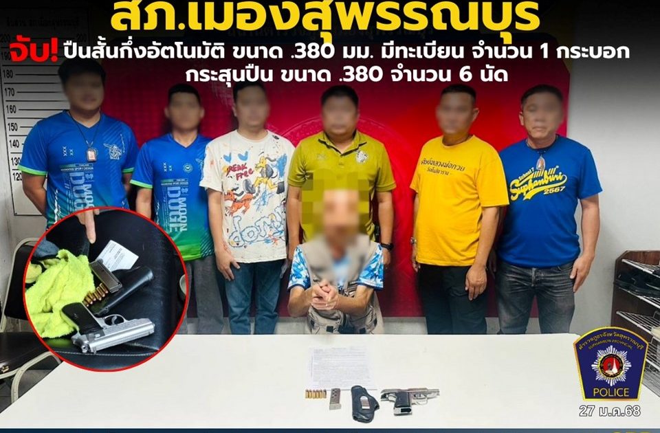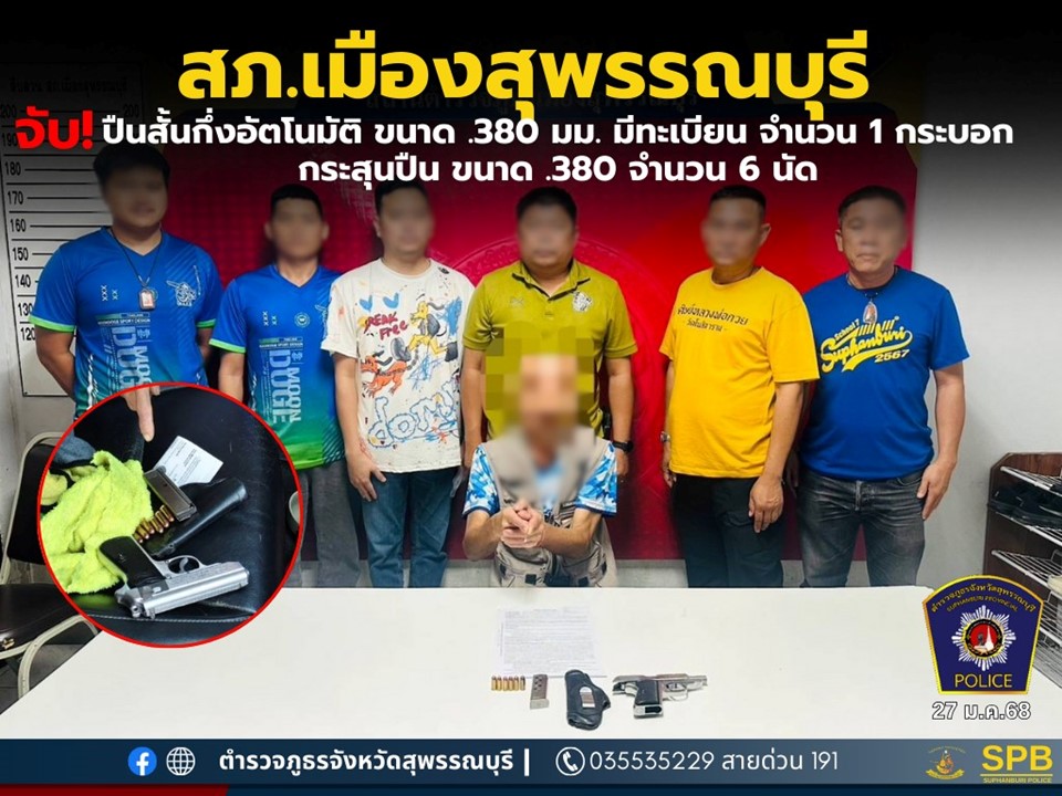 งานสืบสวน จับกุมชายวัย 32 ปี ตรวจค้นพบปืนสั้นกึ่งอัตโนมัติ ขนาด .380 มม.