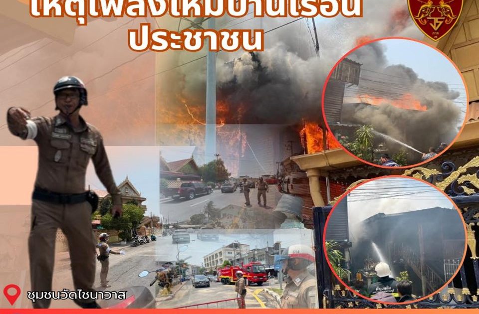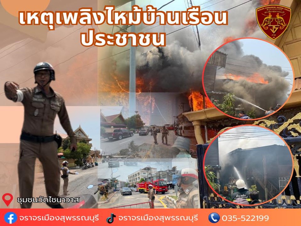 ตำรวจจราจร สภ.เมืองสุพรรณบุรี ช่วยเหลือประชาชน หนีบ้านไฟไหม้