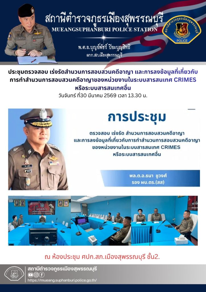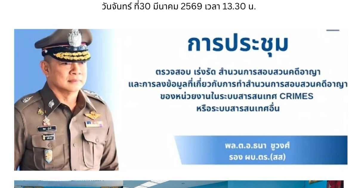 ประชุมตรวจสอบ เร่งรัดสำนวนการสอบสวนคดีอาญา และการลงข้อมูลที่เกี่ยวกับการทำสำนวนการสอบสวนคดีอาญาของหน่วยงานในระบบสารสนเทศ CRIMES หรือระบบสารสนเทศอื่น