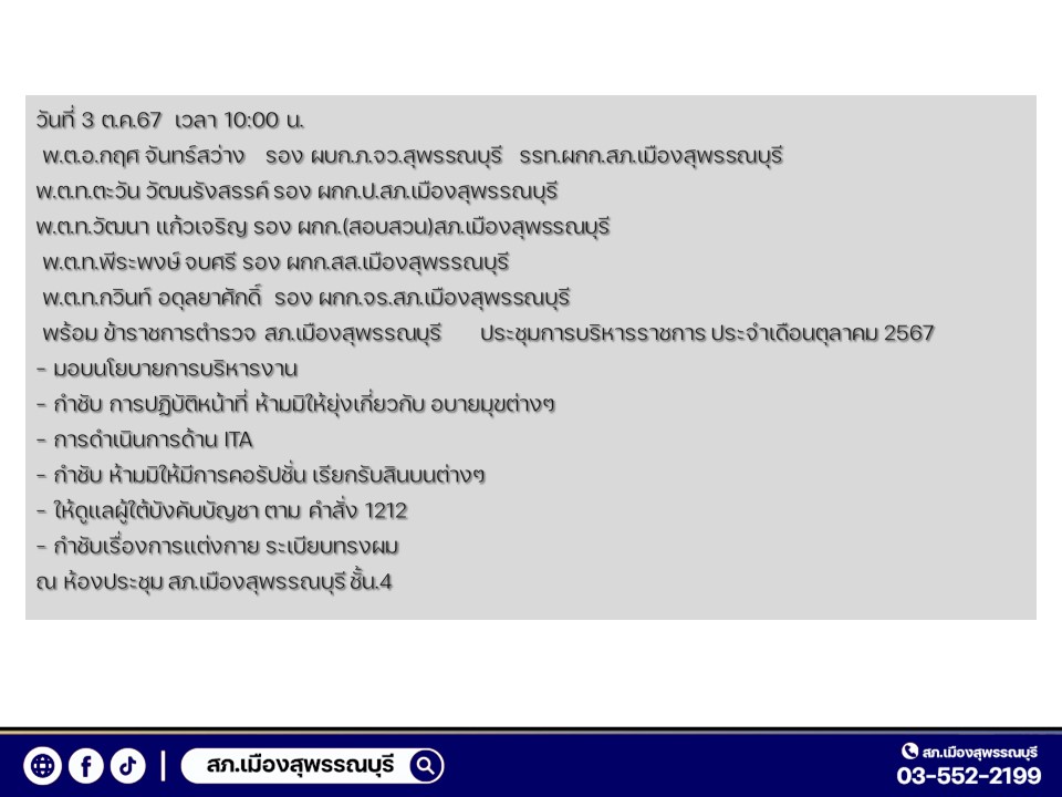 ประชุมบริหารประจำเดือน ตุลาคม พ.ศ.2568 ITA กำชับการต่อต้านการทุจริต