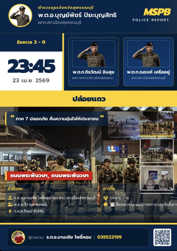 ปล่อยชี้แจงภารกิจ แผนการตรวจ และข้อสั่งการของ ผบ., ปล่อยแถวออกปฏิบัติหน้าที่, ป้องกันการรวมกลุ่มแข่งรถในทาง, ปิดสถานบริการ,สถานประกอบการฯ ตามเวลากฎหมายกำหนด