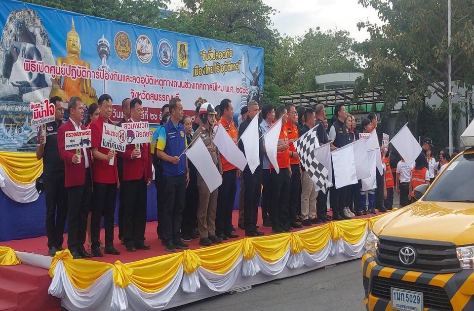 สภ.เมืองสุพรรณบุรี รักษาความปลอดภัย อำนวยความสะดวกการจราจร และร่วมพิธีเปิดศูนย์ปฏิบัติการป้องกันและลดอุบัติเหตุทางถนนช่วงเทศกาลปีใหม่ พ.ศ.๒๕๖๘
