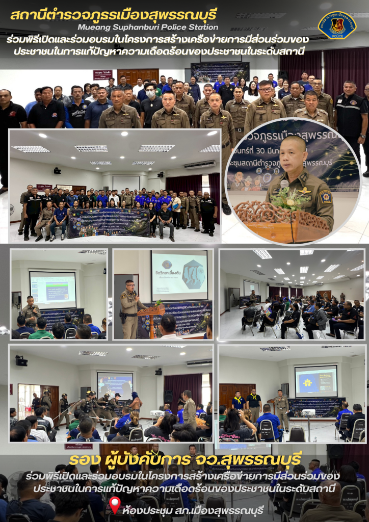 เปิดอบรมโครงการสร้างเครือข่ายการมีส่วนร่วมของประชาชนในการแก้ไขปัญหาความเดือดร้อนของประชาชนในระดับสถานีตำรวจ เพื่อสนับสนุนการป้องกันอาชญากรรม ของ สภ.เมืองสุพรรณบุรี