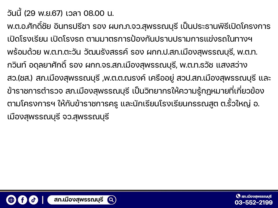 โครงการ เปิดโรงเรียน เปิดโรงรถ ตามมาตรการป้องกันปราบปรามการแข่งรถในทาง