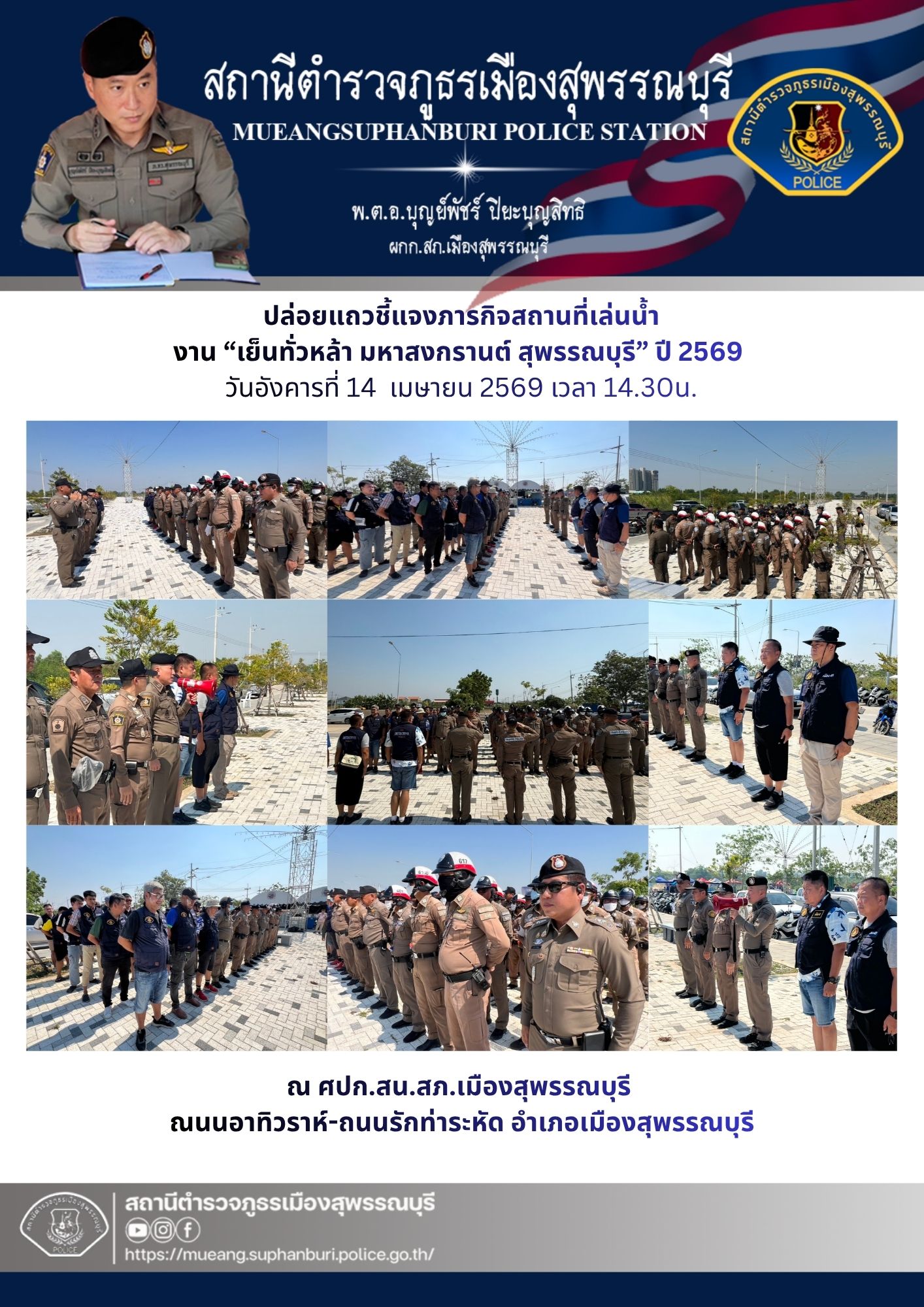 ปล่อยแถวชี้แจง ภารกิจ การรักษาความปลอดภัยและอำนวยความสะดวกด้านการจราจร สถานที่จัด งาน “เย็นทั่วหล้ามหาสงกรานต์สุพรรณบุรี 2569“