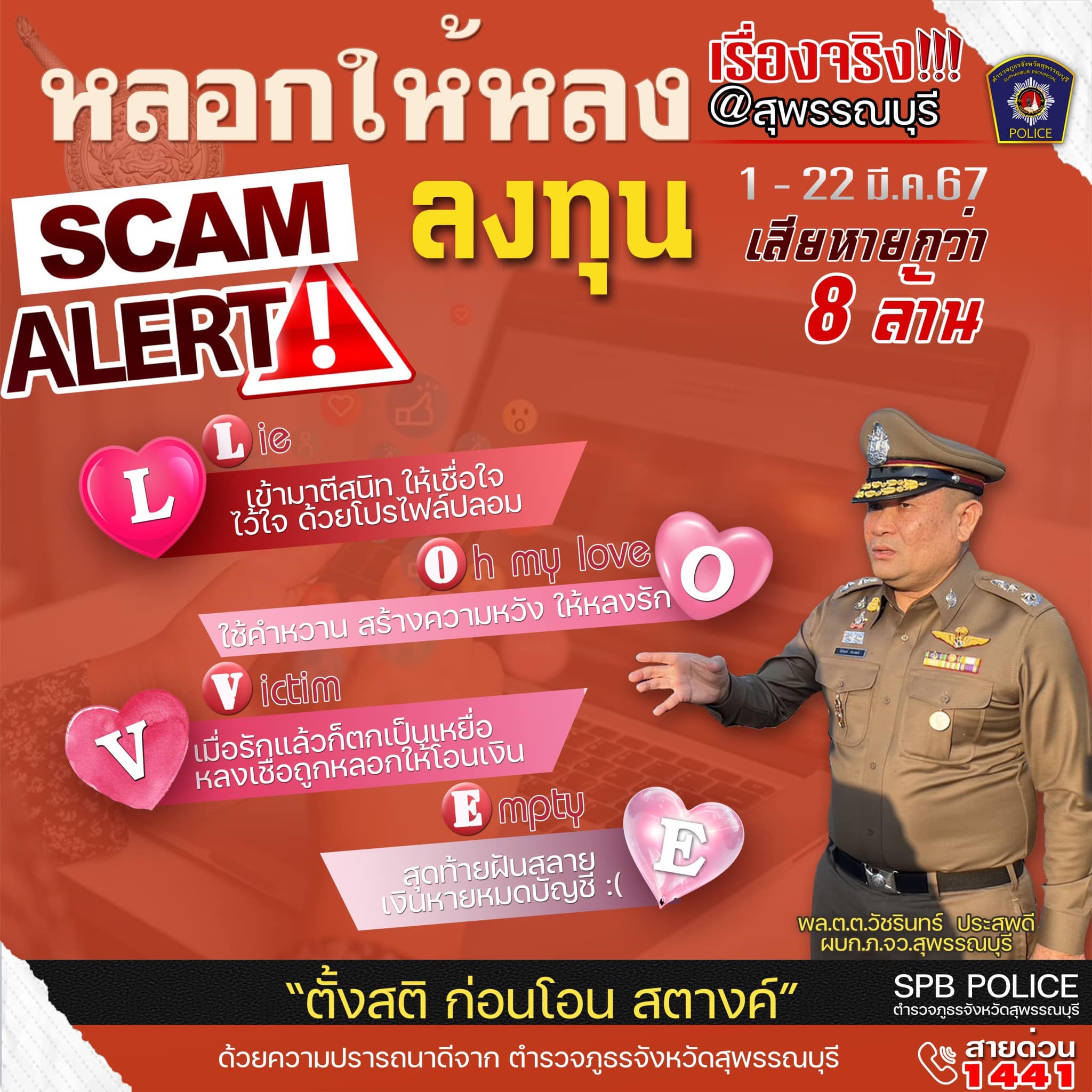 👮🏼♂️ตำรวจภูธรจังหวัดสุพรรณบุรี👮🏼 โปรดระวัง‼️ “เรื่องจริง @สุพรรณบุรี” หล่อ สวย รวย โสด Hybrid Scam