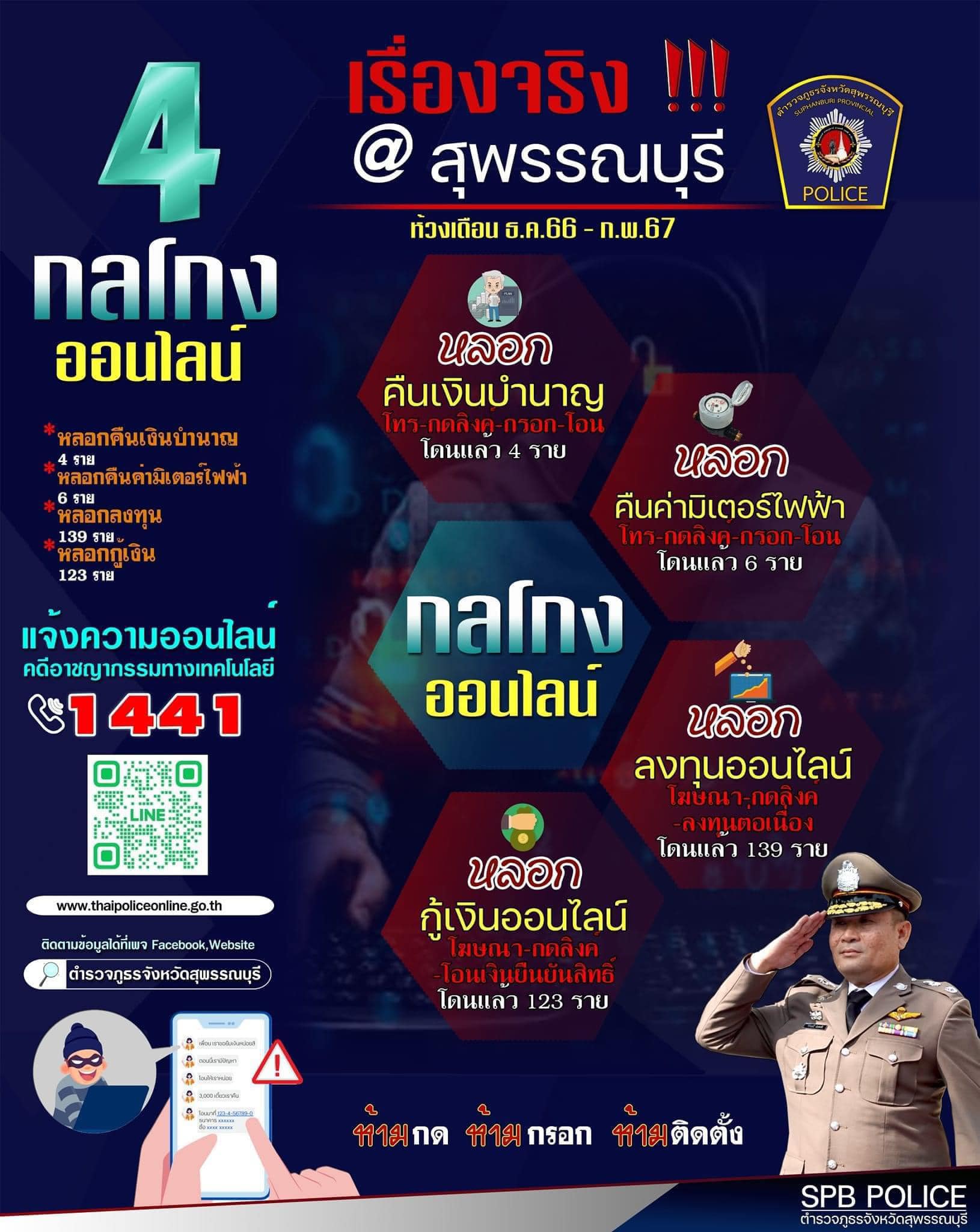 ในช่วง 3 เดือนที่ผ่านมา…เกิดคดีออนไลน์ที่น่าสนใจ 4 ประเภทในเขตพื้นที่จังหวัดสุพรรณบุรี ดังนี้แ
