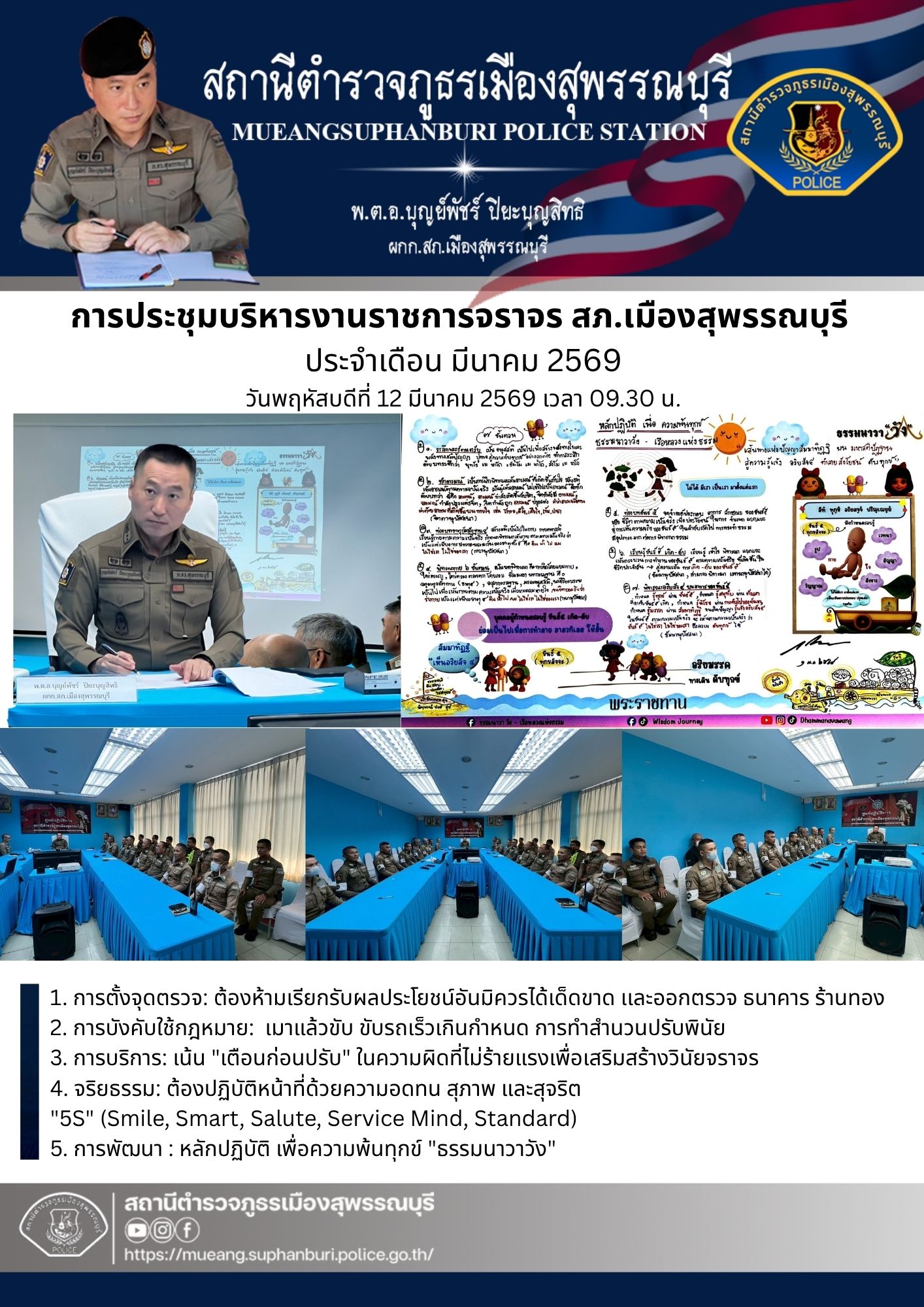 วันจันทร์ ที่ 10 มีนาคม 2568 พ.ต.อ.วันชัย ขาวรัมย์ ผกก.สภ.เมืองสุพรรณบุรี จัดกิจกรรมโครงการอบรมข้ารา