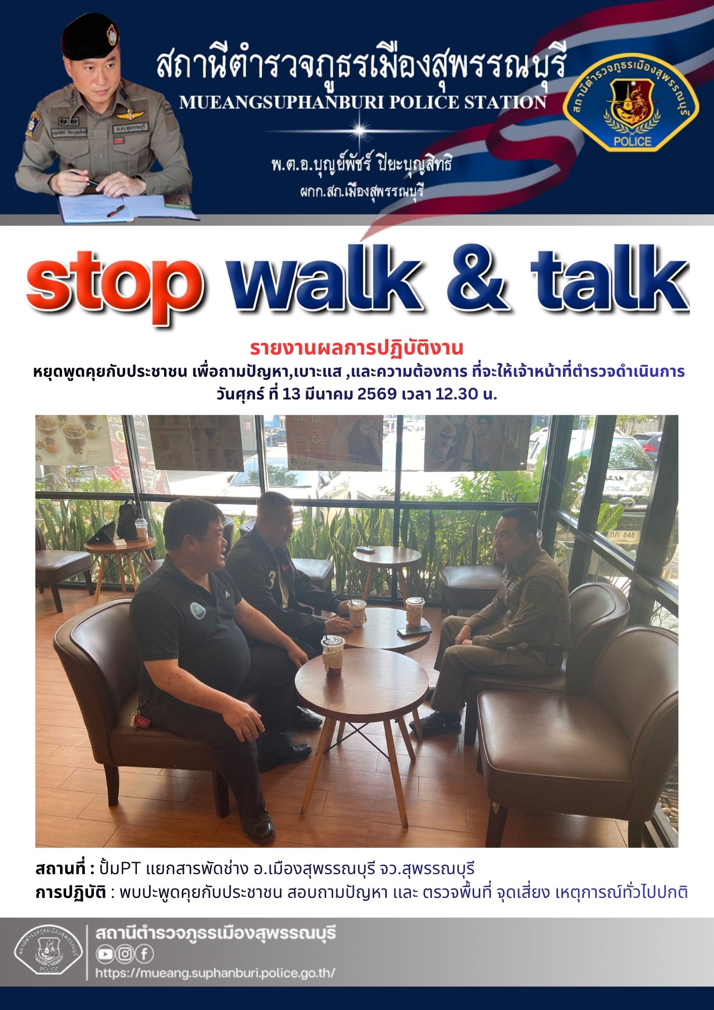 วันที่ 7 มี.ค.68 เวลา 12.00 น. พ.ด.อ.วันชัย ขาวรัมย์ ผกก.สภ.เมืองสุพรรณบุรี พร้อม สว.อก.สภ.เมืองสุพร