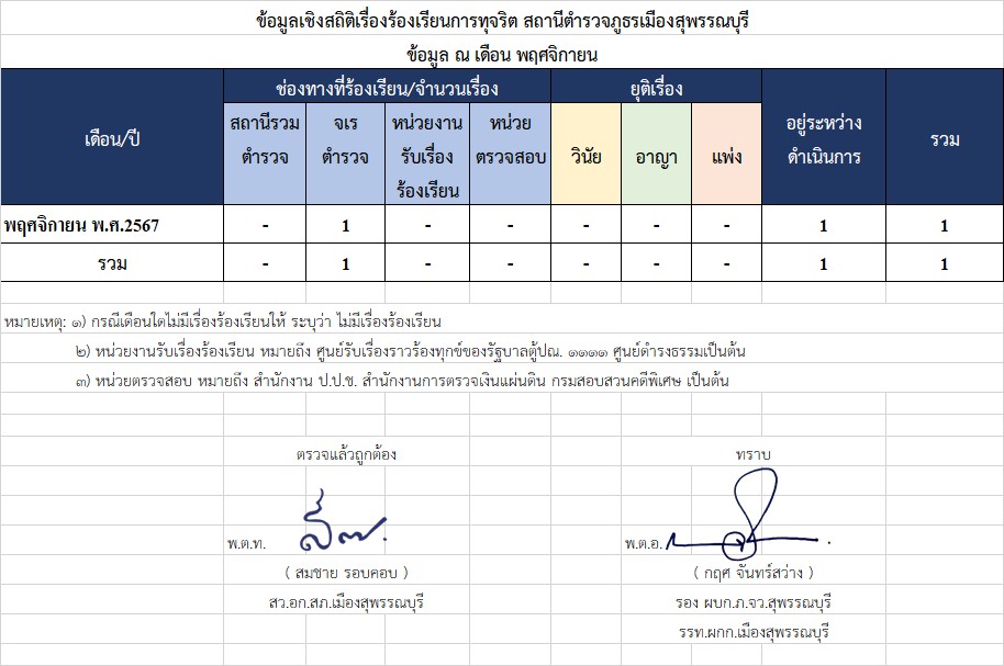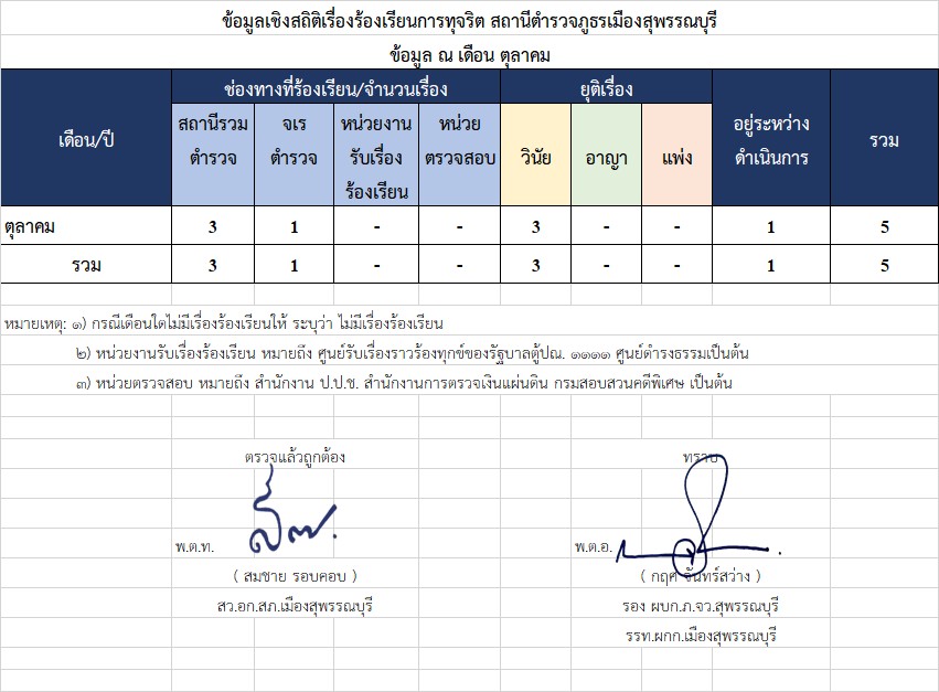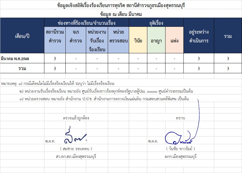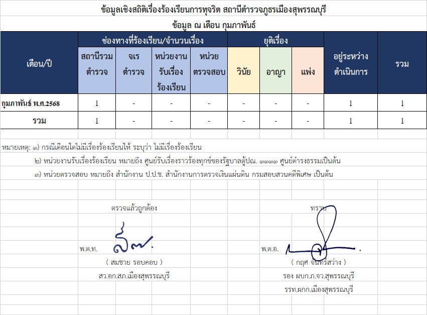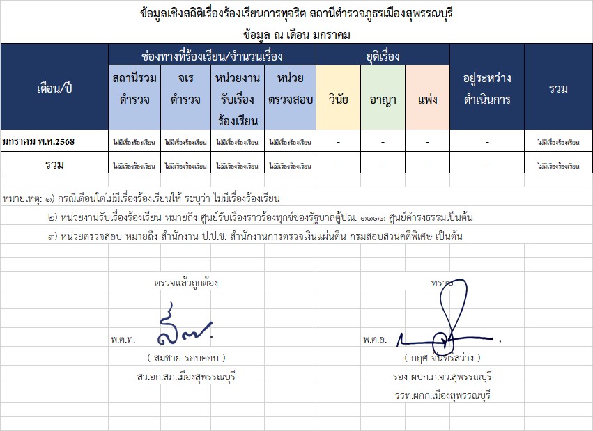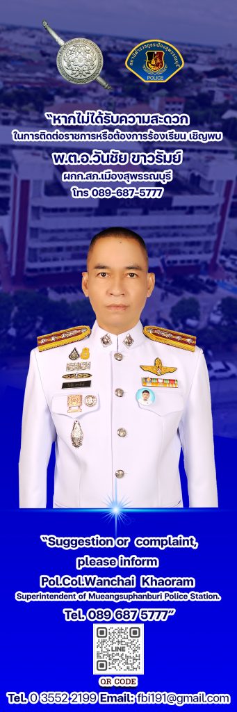 ช่องทางการแจ้งเรื่องร้องเรียนการทุจริต สถานีตำรวจภูธรเมืองสุพรรณบุรี